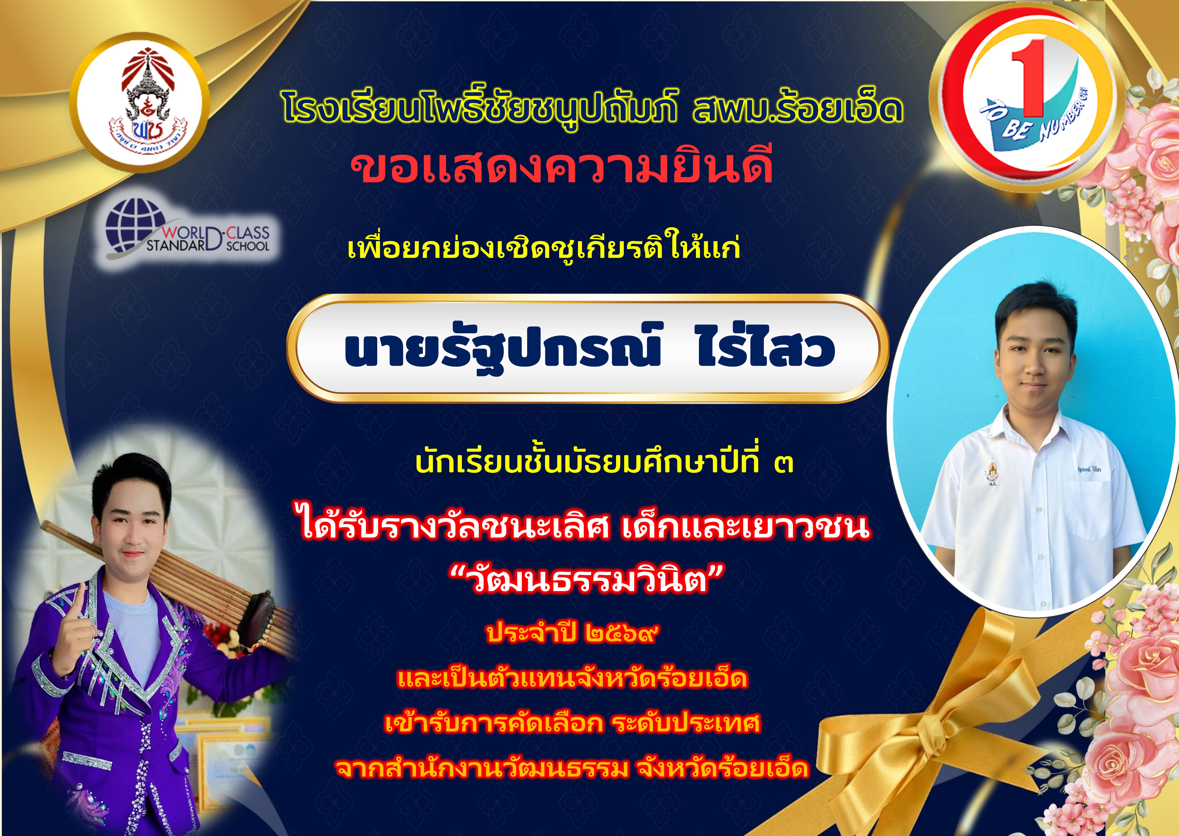 ได้รับคัดเลือกเป็นตัวแทนโรงเรียนในสหวิทยาเขตพัฒน์วิทย์ ที่ไปประกวด TO BE NUMBER ONE IDOL ในระดับจังหวัดร้อยเอ็ด